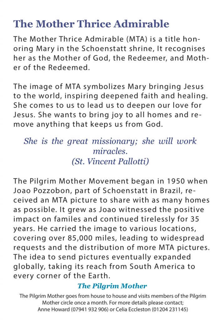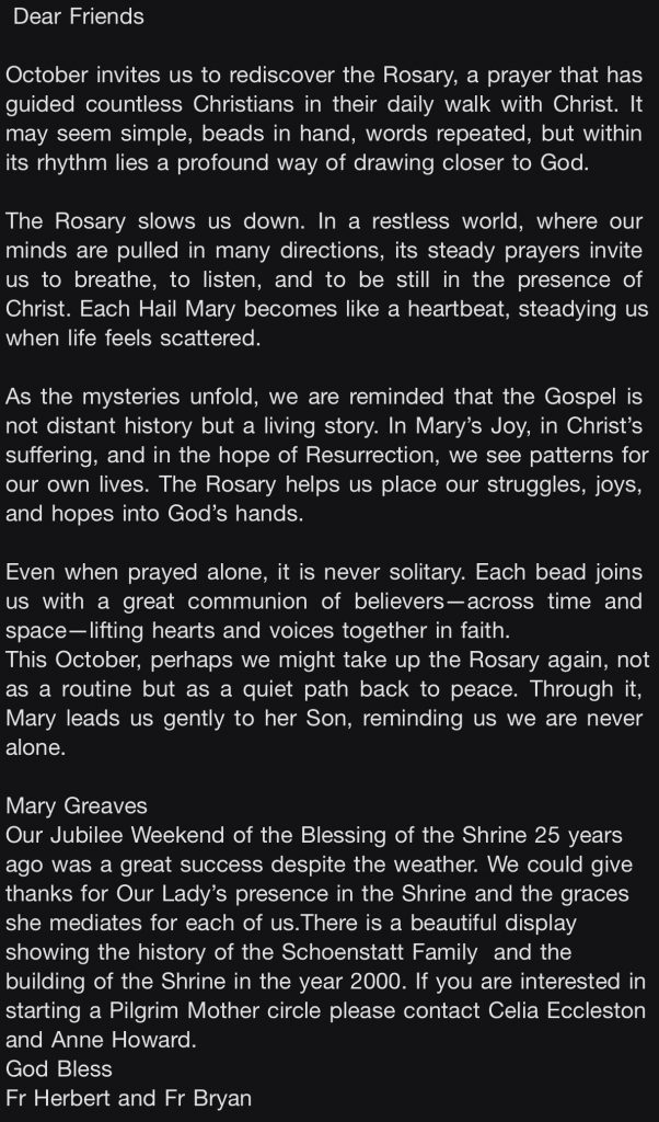 On Monday we have 9.00am Mass at the Shrine for the birthday of Our Lady. If you have not registered yet for the Silver Jubilee weekend, please find the details of hoe to register in this Newsletter
